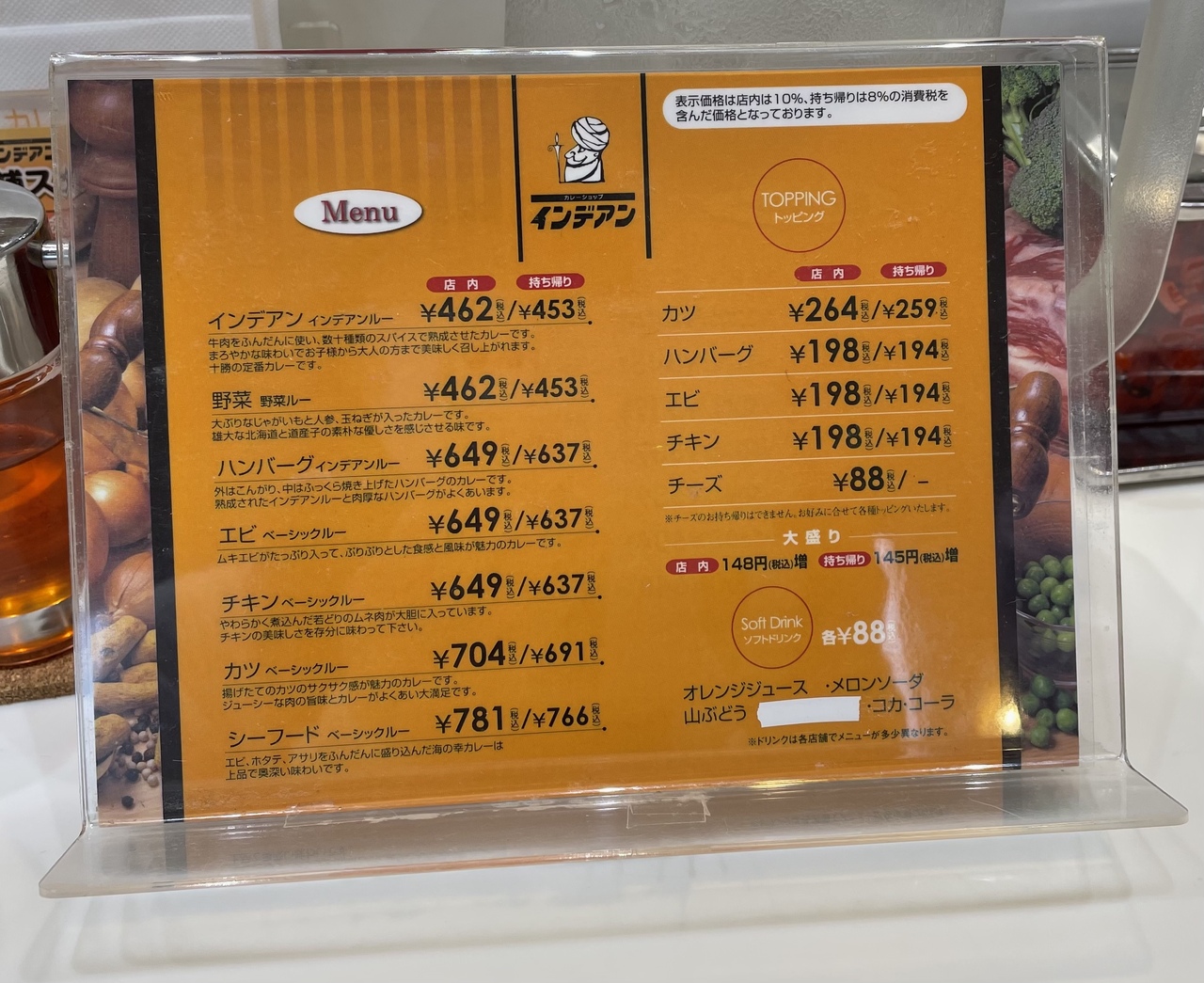カレー「インデアン めむろ店」 河西郡芽室町東めむろ