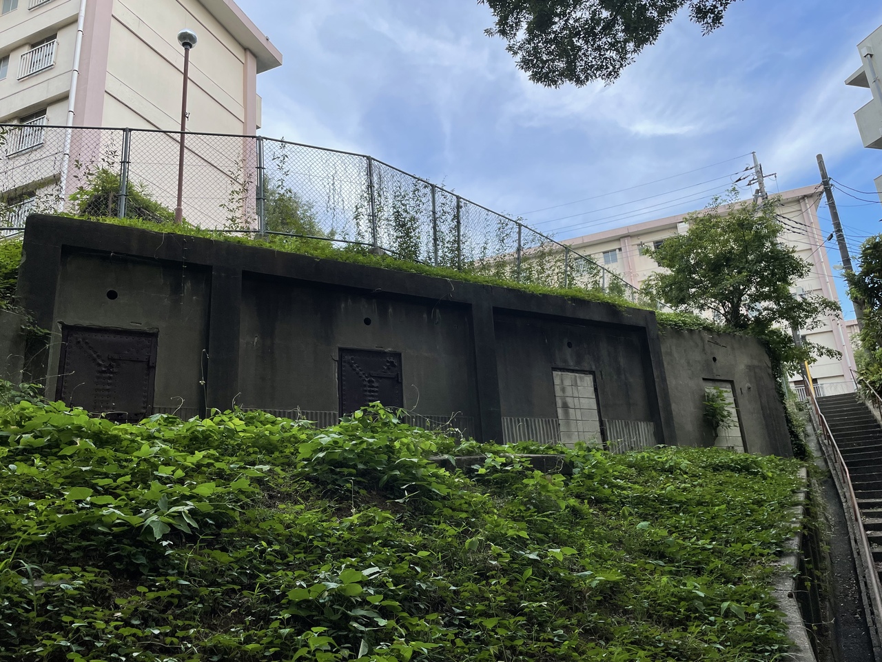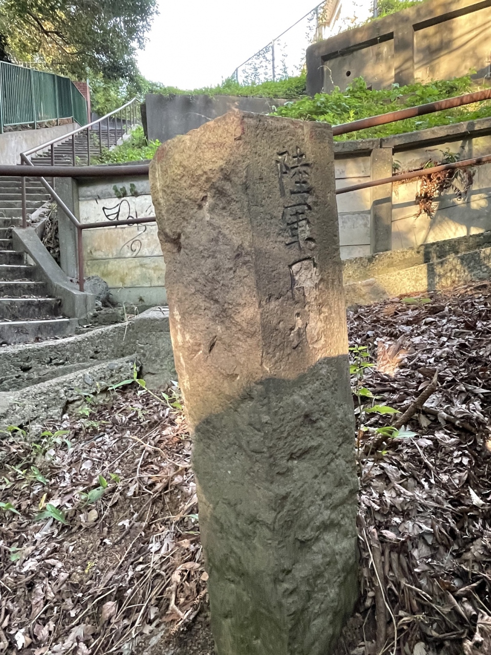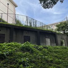 松戸駅東口から近い松戸中央公園は元陸軍工兵学校があり、入口には門柱が残っています。公園敷地を抜けて、北松戸方面に進むと倉庫跡の建物が残っています。案内もなく、一部は埋め立てられたコンクリートの建物です。すぐ前には陸軍用地を示す標識もありました。