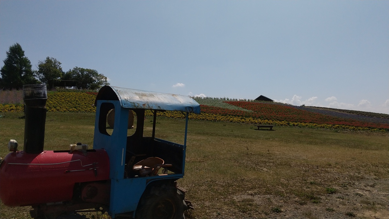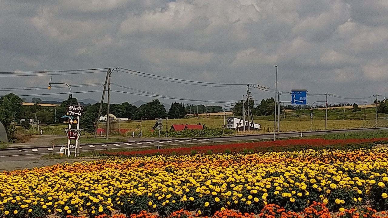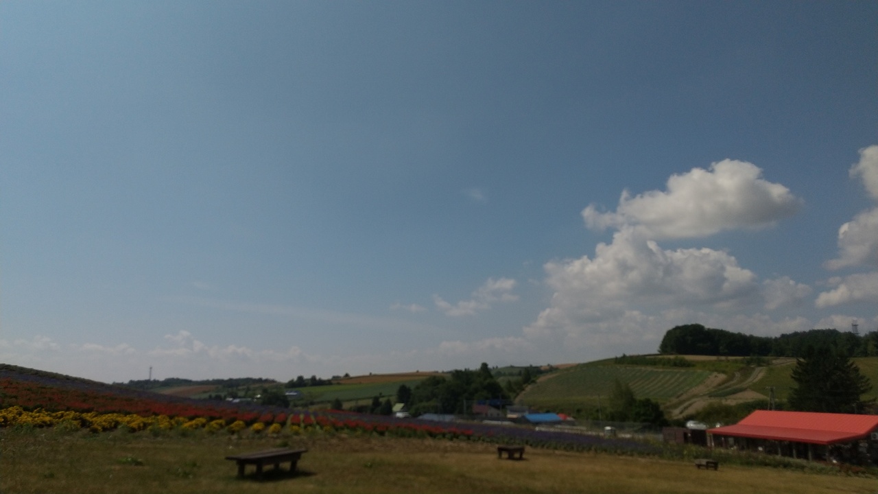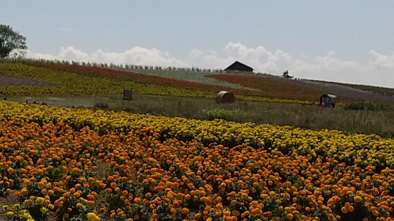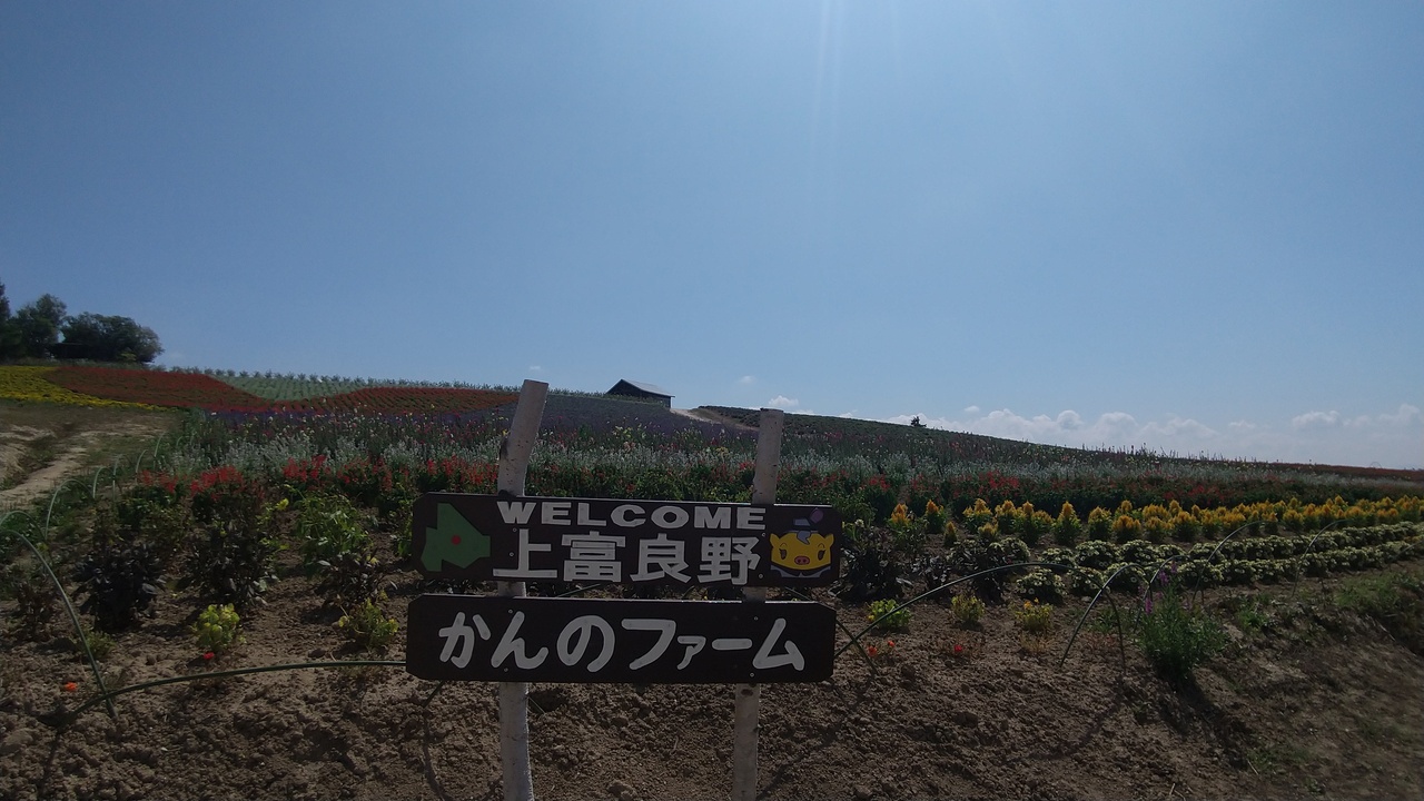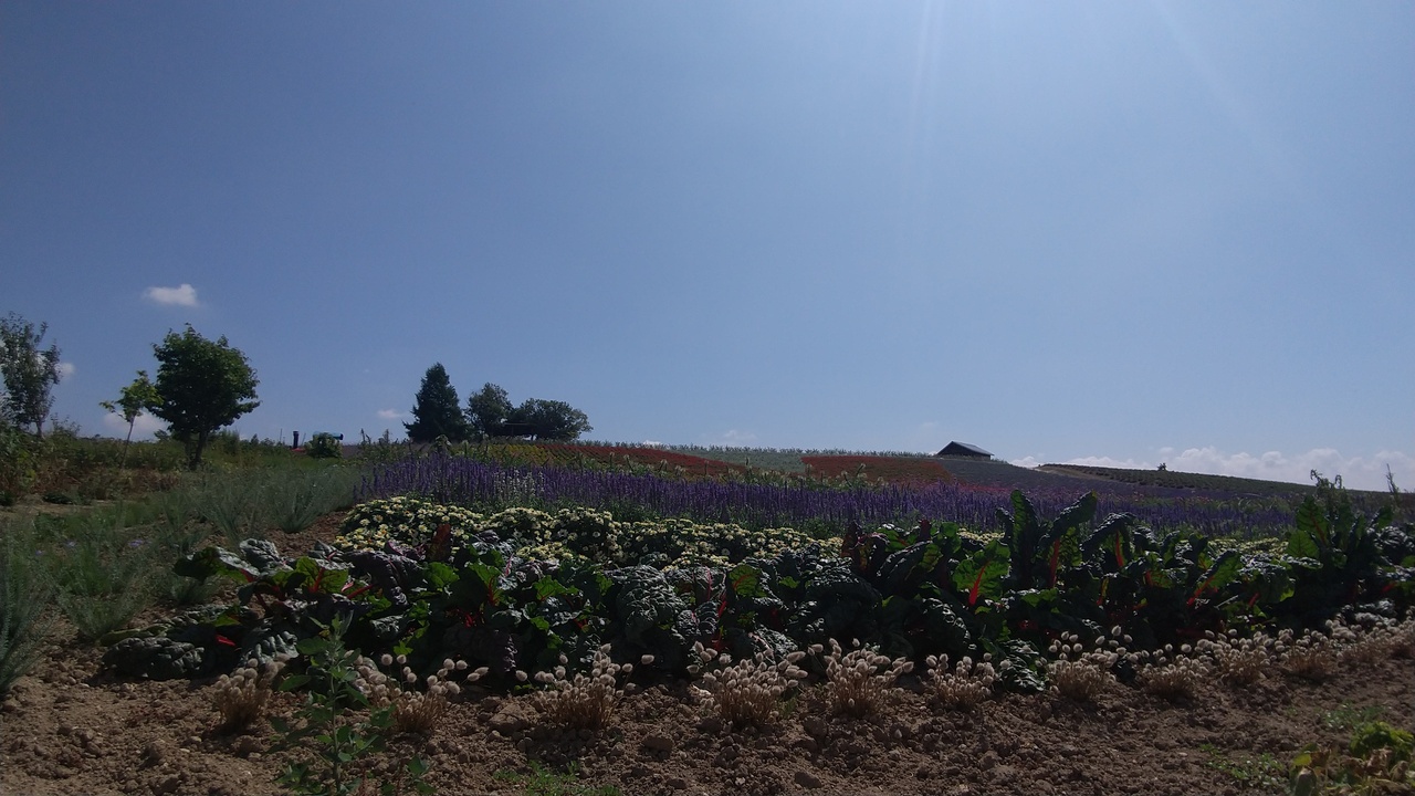 陽射しが強い猛暑続きの美瑛。ドライブ途中に美しい花が一面に咲くファームを散策。