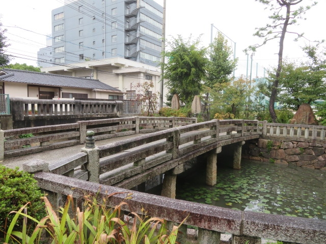 岡山藩藩学は、藩主池田光政が1669年に藩士の子弟教育のために創設した学校です。旧建物は、順次撤去されていったものの、昭和20年の岡山空襲により焼失ししまい、この池が岡山藩学跡として現存する唯一の遺構です。池に架かった橋が歴史を物語る雰囲気です。