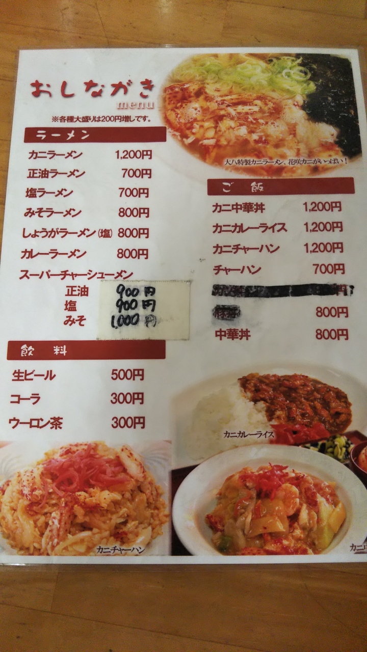 他にもカニカレー、カニチャーハンなどがありましたが、餃子などのサイドメニューやボイルカニ、焼きカニなどが無かったので、いろいろ食べたい人にはちょっと向かないかも!