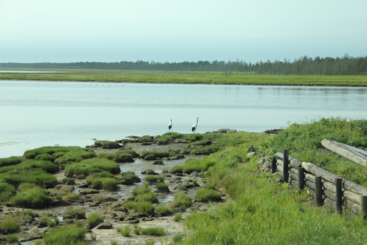 レンタカーで釧路方面から根室へ向かう途中、根室の入口、国道44号線の車窓から眺めることができました。汽水湖としてはサロマ湖についで日本で二番目の大きさです。ちょうど湖畔にタンチョウを見ることができました。