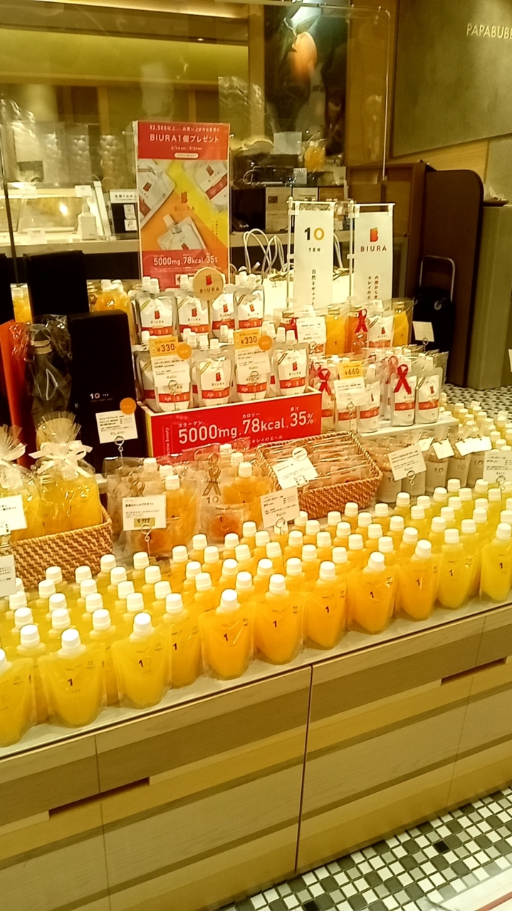 東京・銀座の「GINZA SIX」のB2Fに出店している『10ファクトリー 銀座店』には、みかんを使用したドリンクがいろいろと販売されています。なかには、コラーゲンも入っている商品もあったりと、持ち運びしやすいパッケージ商品も多いです。夏バテ対策にも。