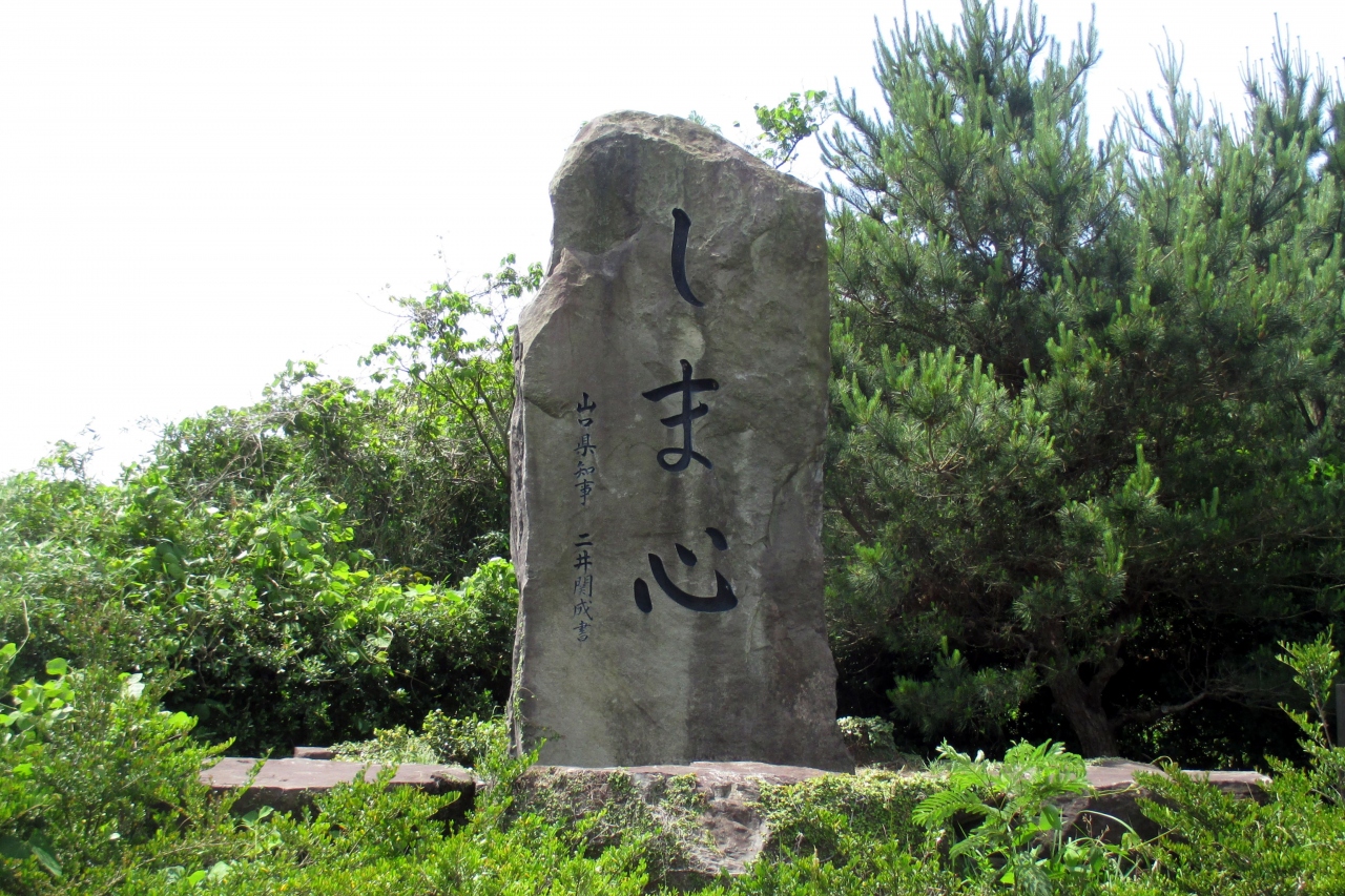 角島大橋を角島に渡ったすぐのところにある公園です。ここからは角島大橋を角島側から見る!といった場所ですが、高さがないので期待するほどの眺めではありません。ここには「しま心」と刻まれた大きな石碑があります。角島大橋の完成記念したもので、当時の山口県知事の書によるものだそうです。