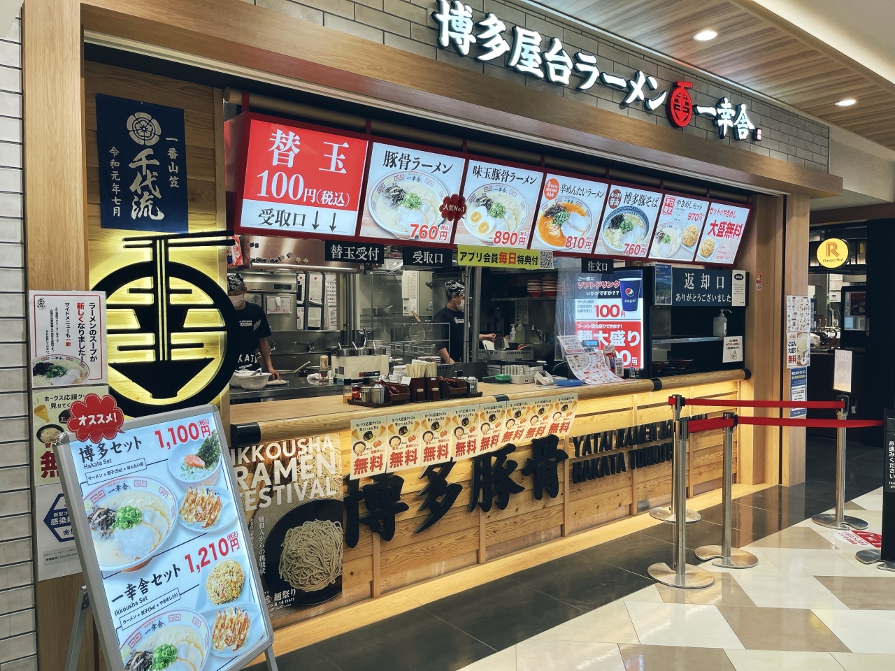 コチラ2018年「マークイズ福岡ももち」がオープンと同時に3階フードコート内に昔ながらの「博多屋台」をコンセプトにオープンされました〜訪麺したのは2021年7月15日~8月14日の期間中「一幸舎各店」で開催されている「麺祭り2021」で・・・グループの「製麺屋慶史謹製」からの課題麺「乱切り」をどのようなラーメンにするのか?コンテストされ各店舗で振る舞われるというイベントです!福岡では「マークイズ福岡ももち店/煮干しそば」が3位入賞!と福岡にある一幸舎店の中でもトップの成績を収めました〜「総本店/にぼとん」「福岡空港国内ターミナル店/鶏ガラ煮干しラーメン」「博多デイトス店/濃厚豚骨辛担々麺」「博多一番街店/味彩まぜそば」となっています〜ちなみに優勝は「ららぽーと立川立飛店」2位は「大阪福島店」が「麺祭り」の栄光を獲得した。