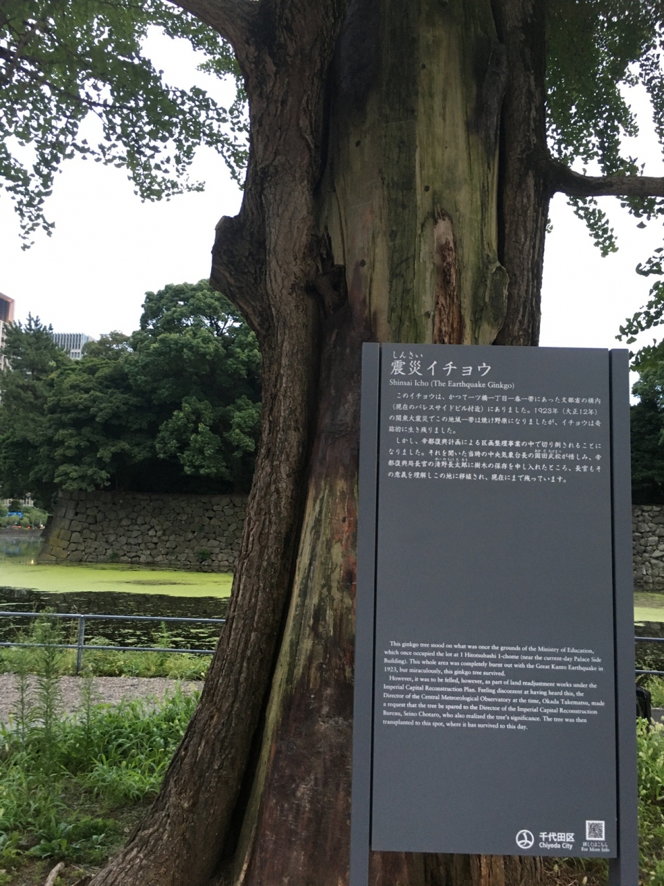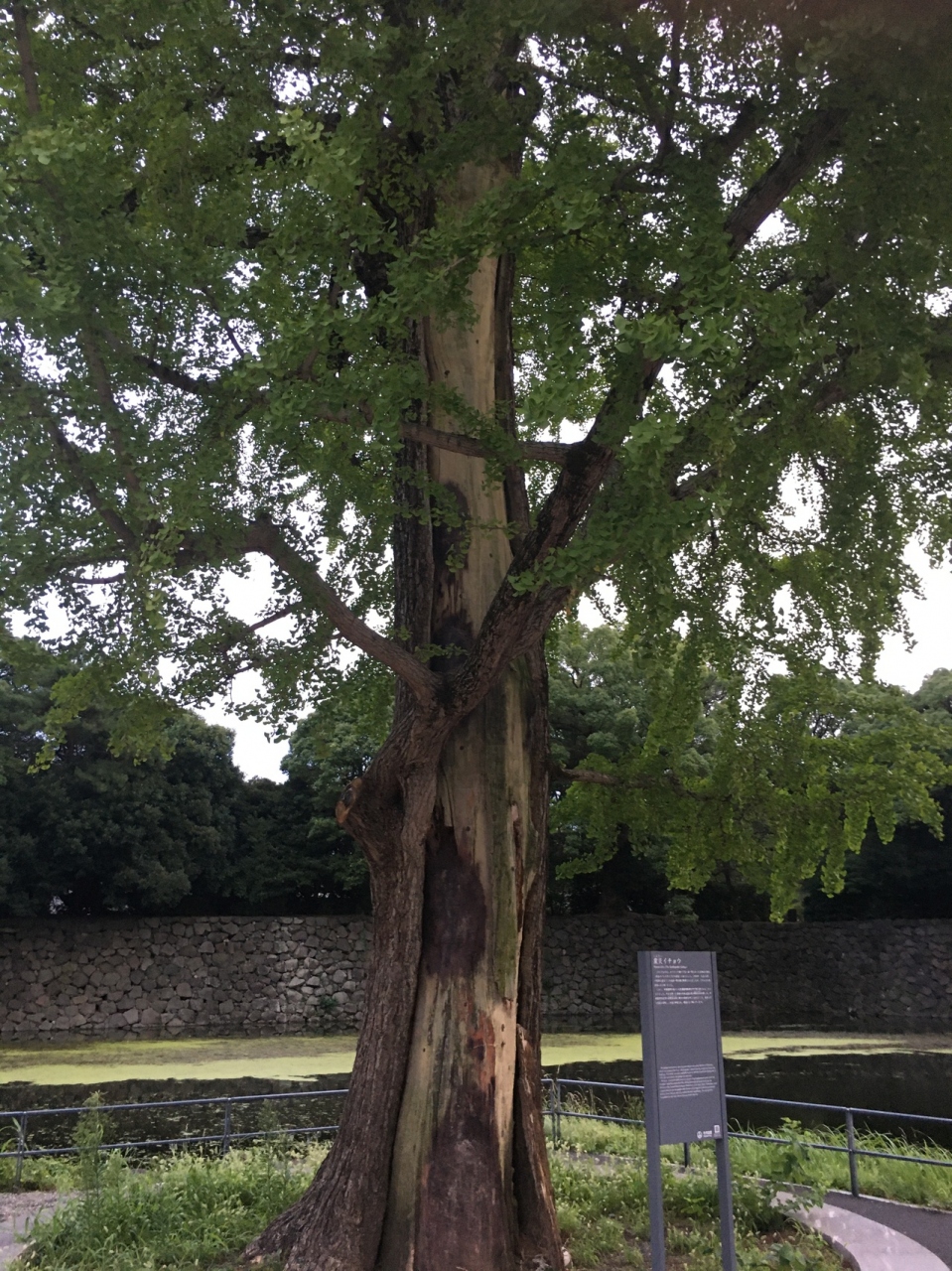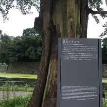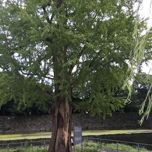 大手濠緑地にある大きな木で皇居の濠との境にありました。上を見上げるような木で、木の周りには座ることも出来ます。関東大震災で生き残った木で、枝が何本もあり緑の葉が見事でしたが樹木が少し禿げかかっていました。