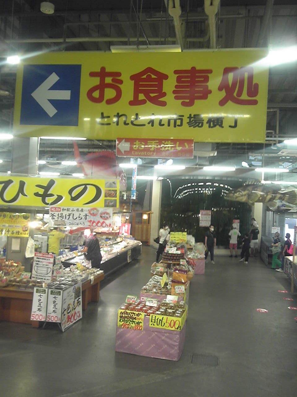 空港もある南紀白浜の町は、ホテルは多いものの、店はあまり多くないので、おみやげ探しなら、この市場がおすすめです。