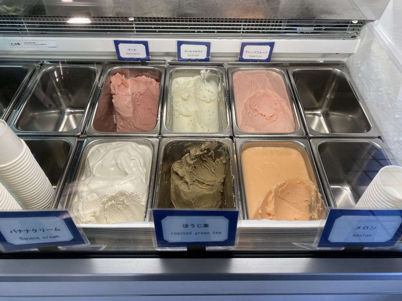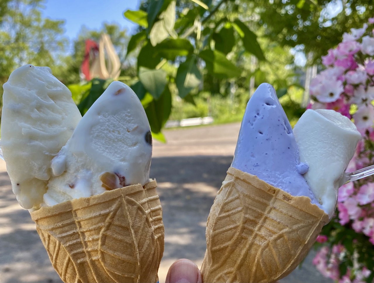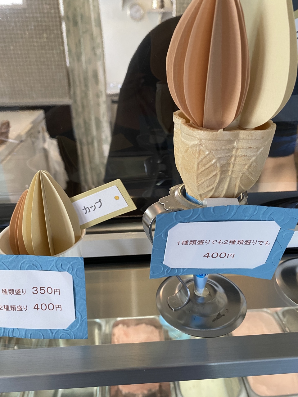 北海道はこの夏は暑くてすぐ溶けるので、店をでて外のベンチですぐに食べました。