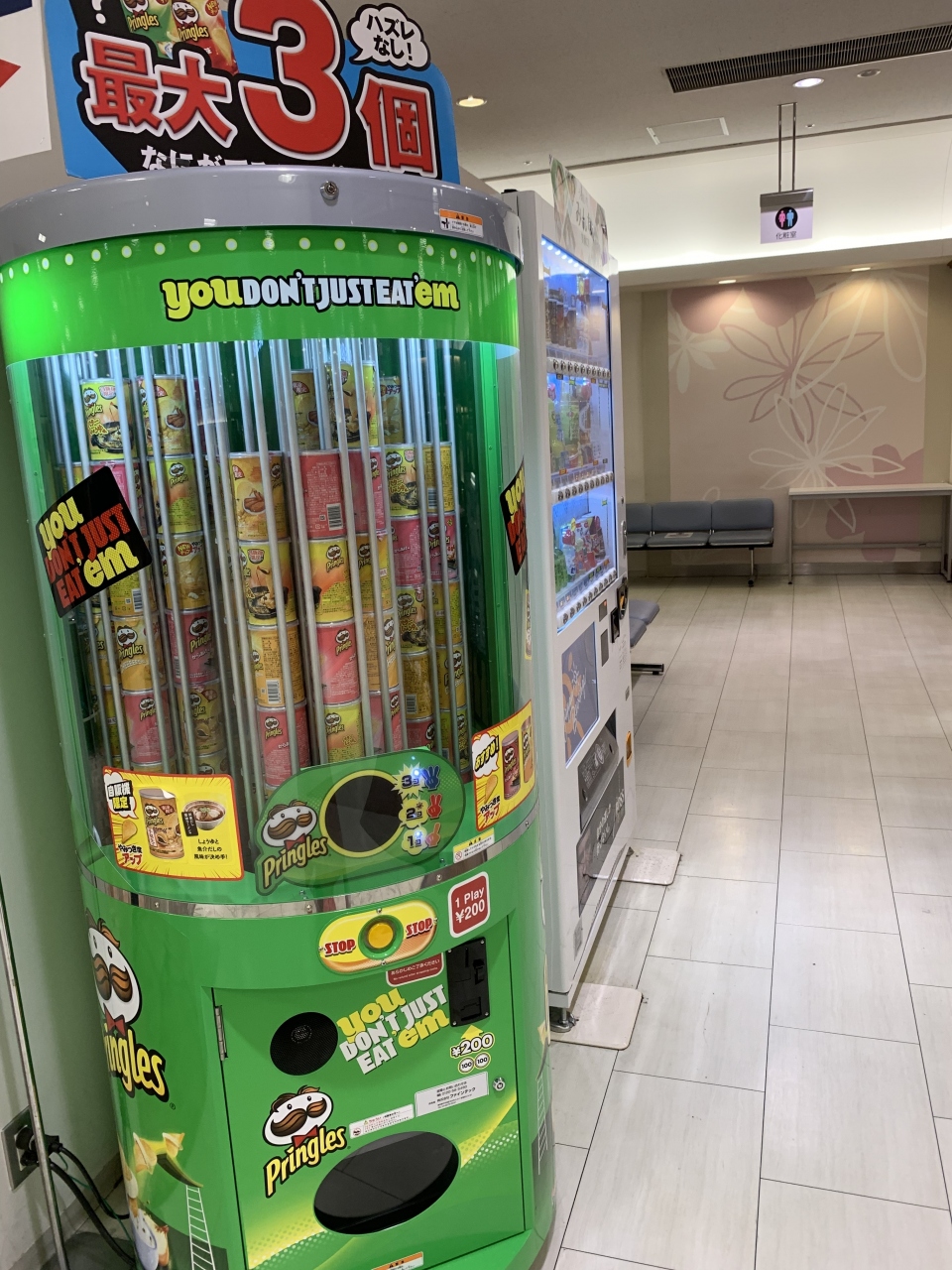 2階トイレ近くには、「プリングルス」の自動販売機が…