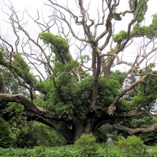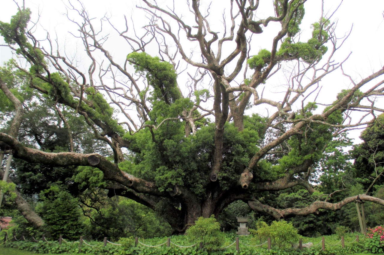 ここに生えているクスノキは山口県内最大のクスの木だそうです。日本全体でも3つのクスノキ大樹の1つだそうです。確かに大きく、樹齢は約1000年で、目通り幹周り11.2m、樹高27mだそうです。枝張りは東西53m、南北53mだそうですから、邪魔をする周りの木がなかったのでしょうね。特徴的なのは主幹の地上5m辺りから、タコのように大きな枝が伸びていることです。タコよりも数多く18本もあるそうです。一見の価値がありました。