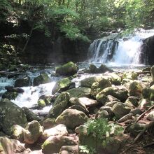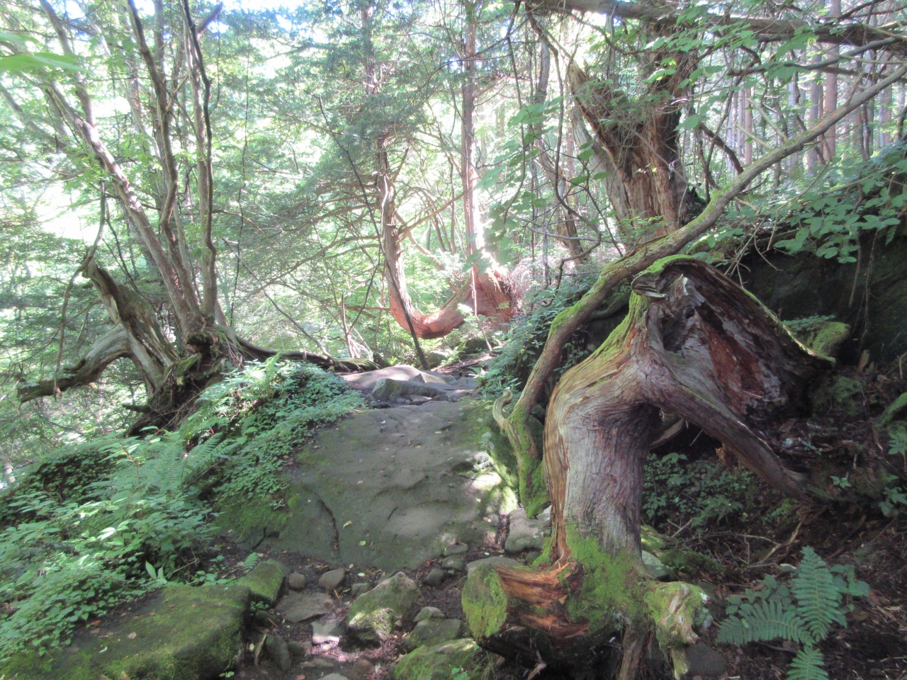 蓼科湖から車で1分ほどの滝の湯グランドホテル入口横の狭い山道を入り、600mほどのところに駐車場があります。駐車場からは歩いて10分ほどで滝が鑑賞できる四阿に到着します。昔は大滝と呼ばれていましたが、いつのころからか蓼科大滝と呼ばれるようになっていました。駐車場から滝までの山道には、コケが生えた大きな石や、幹や根か曲がりくねった原生林が形成されています。長い年月をかけて造られたことがわかる原生林です。かつては訪れる人も少なかった蓼科大滝ですが、最近は映画やドラマのロケが行われたり、小型の観光バスもやってきたりする観光スポットになっています。滝までの道は根や石がむき出しになっていて歩きにくく、雨が降った後はぬかるんでいるので避けた方がよいかもしれません。