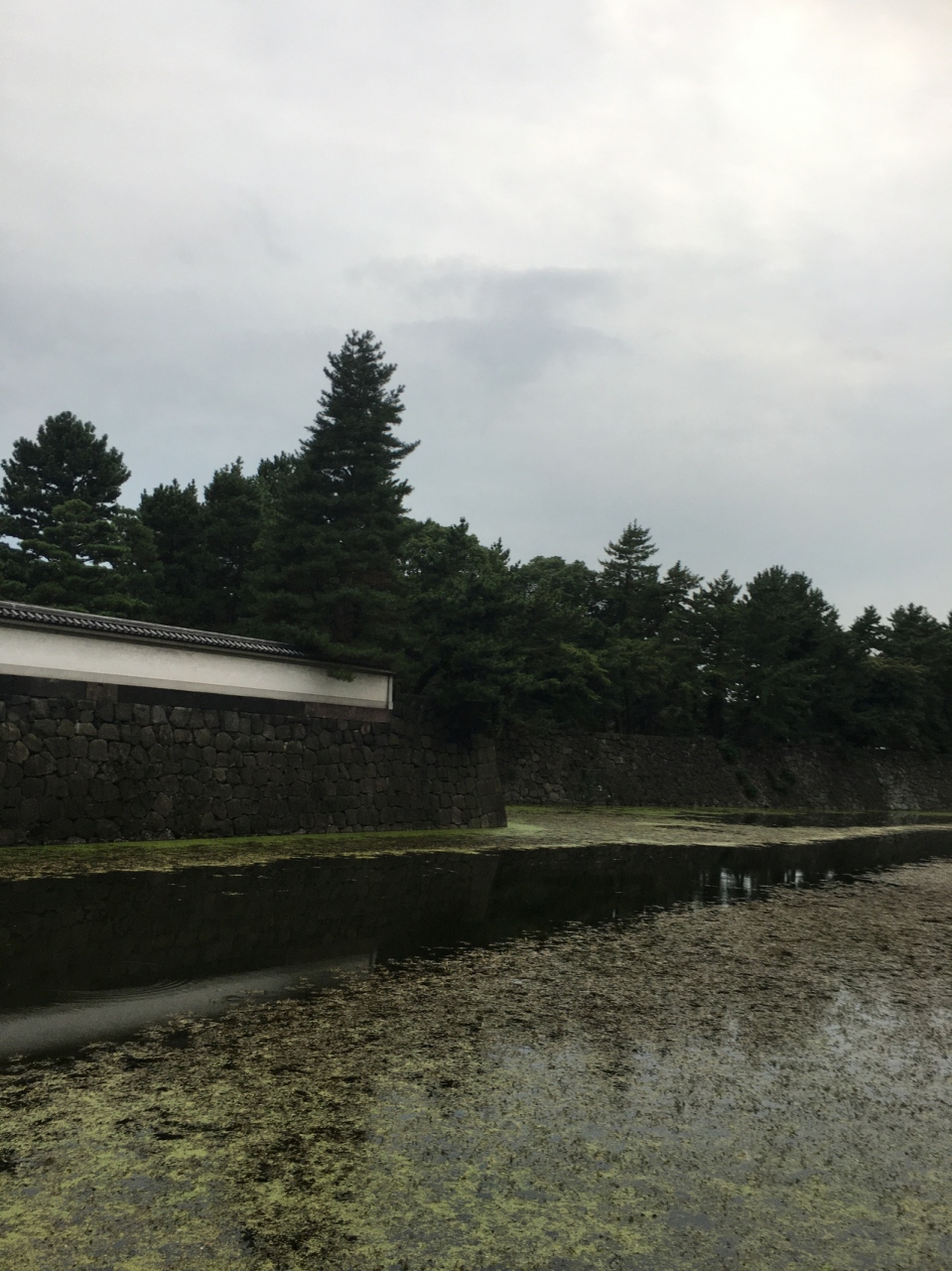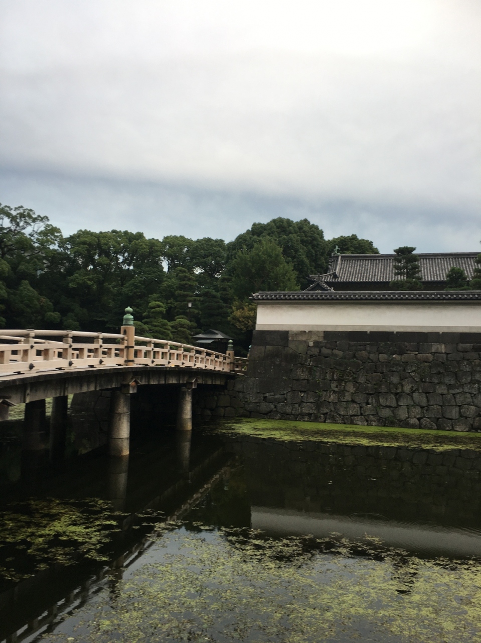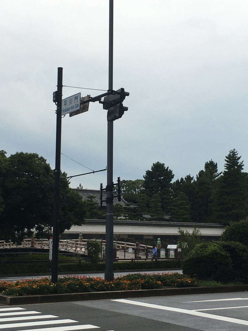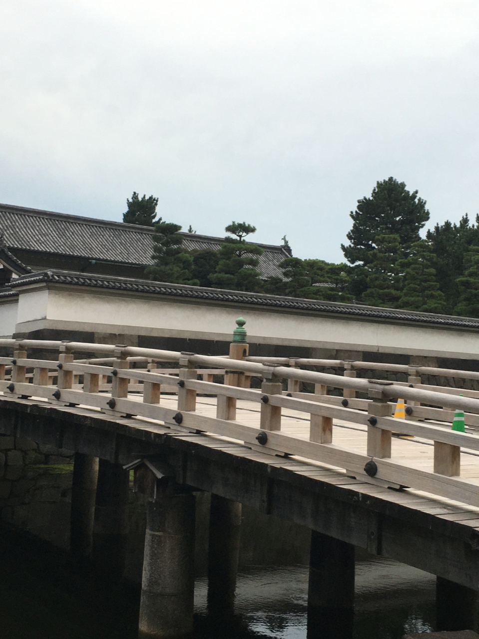 江戸城の濠に時代劇に出てきそうなすこし丸みを帯びた木の橋を渡って行くことになりますが渡れる時間は日中のみとなります。江戸城の濠に沿った門で、綺麗な松が生え、建物が石垣に沿った門で、よく城で見かける門構えでした。