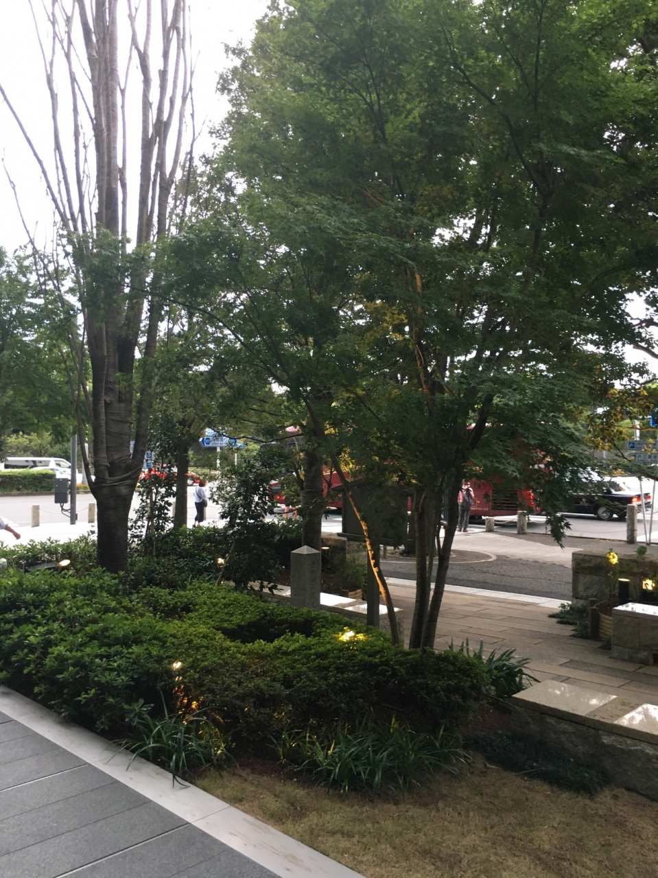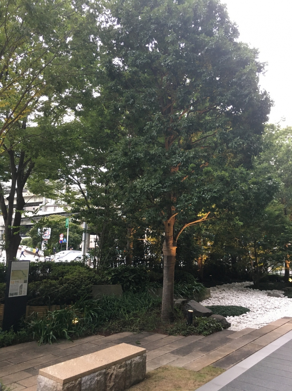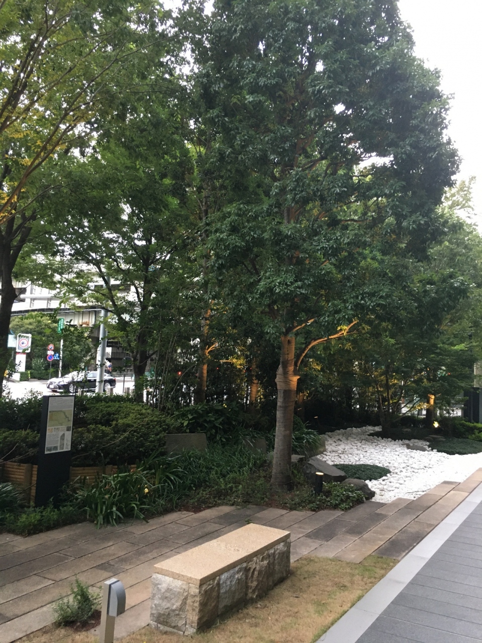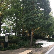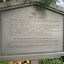 丸紅本社ビルの横にあり、木々が生え整備された場所にあり、ベンチもありました。木々があるため木陰になっているので暑さを凌ぎました。当時の地図が掲載されていて、出土された陶磁器の写真の記載もありました。広大な敷地だったようですが現在はひっそりとした場所でした。