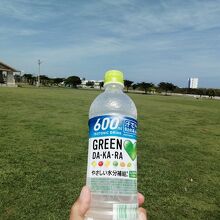 広~い芝生広場です。一画にはステージも兼ねたような大きな東屋があり、多目的なイベントスペースとして使われているのだと思います。すぐ隣りにあるファミマがあったので飲み物を買い、木陰で散歩の休憩をさせてもらいました。