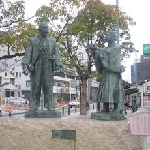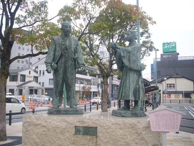 JR長浜駅前の直ぐの場所に建てられている、有名な「三献の茶」の逸話の場面を表したものです。