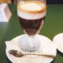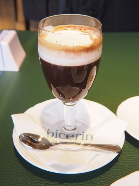スプーンが添えられているが、トリノでは掻き混ぜずに傾けて飲むのが通の飲み方らしい。そうして飲むと、エスプレッソ、チョコレート、生クリームが上手い具合に口に入り、エスプレッソのほろ苦さ、チョコレートドリンクの甘さとほろ苦さ、生クリームの滑らかさを味わえる。