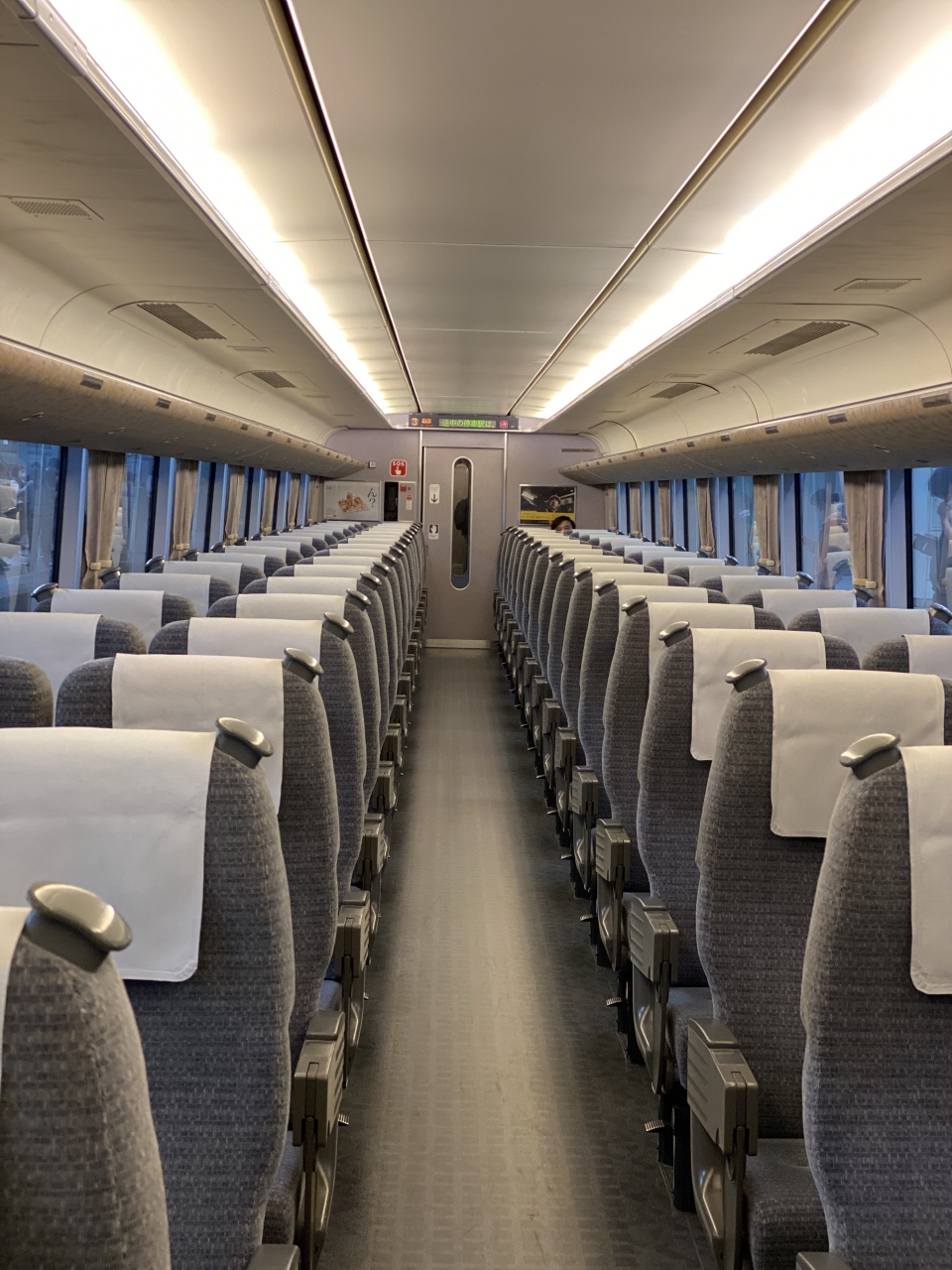 関西と鳥取とむすぶ特急スーパーはくと。本数も少ないのですが、大抵の時期はすいています。最近、関西にも大雨などあまり天気がよくないのですが、このような時はまっさきに運休もしくは遅延になってしまうので、代替のバスなども考えておいたほうがいいなと思いました。(わたしは乗ったのですが、この通りガラガラでした。)