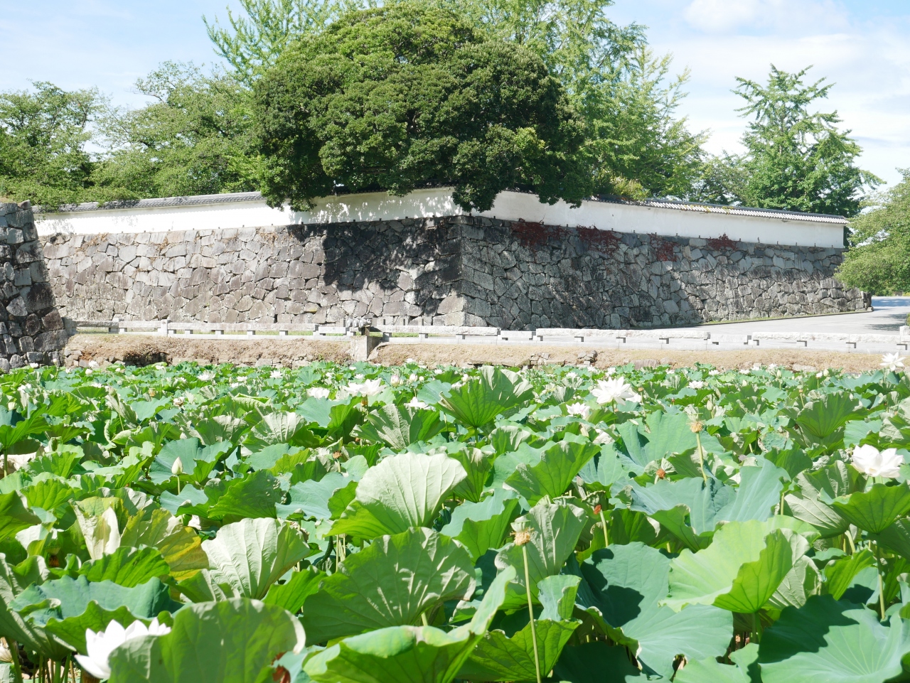ただ、単純にお城跡として楽しむなら、外からのほうがいいかも、お堀と石垣と、お堀を埋め尽くしている蓮の花が、とっても綺麗でした。