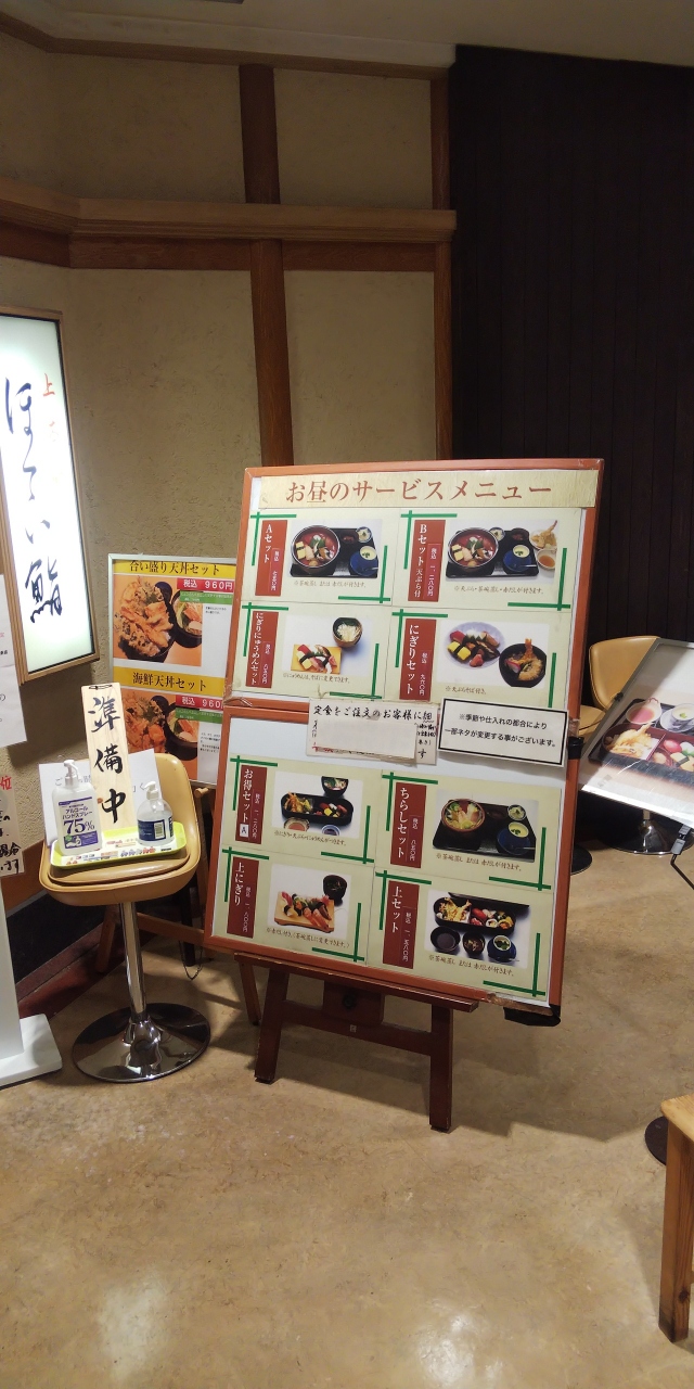 ほてい鮨は堺東の高島屋の地下1階のレストラン階にあります。下りのエスカレーターを降りてすぐ右手側にあります。ランチがリーズナブルなので、時々お邪魔しています。今回は天ぷらそばとお寿司のセットをいただきました。おいしかったです。