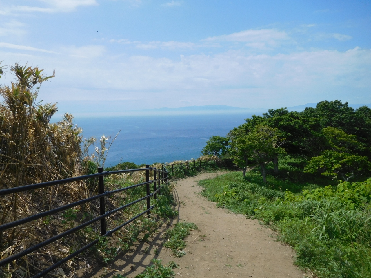 内陸よりも海沿いの方が標高が高い独特な地形です。振り返り見る室蘭市街地の風景も綺麗。灯台があるのも良いアクセント。