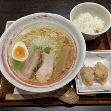 休日のランチで利用しました。塩出汁の鶏そばと唐揚げ、シメのご飯のセットを注文しました。鶏そばはあっさりだけど旨味のある出汁で非常にうまい。唐揚げもアツアツでした。シメのご飯をスープの中に入れて最後まで美味しく頂きました。