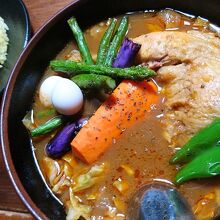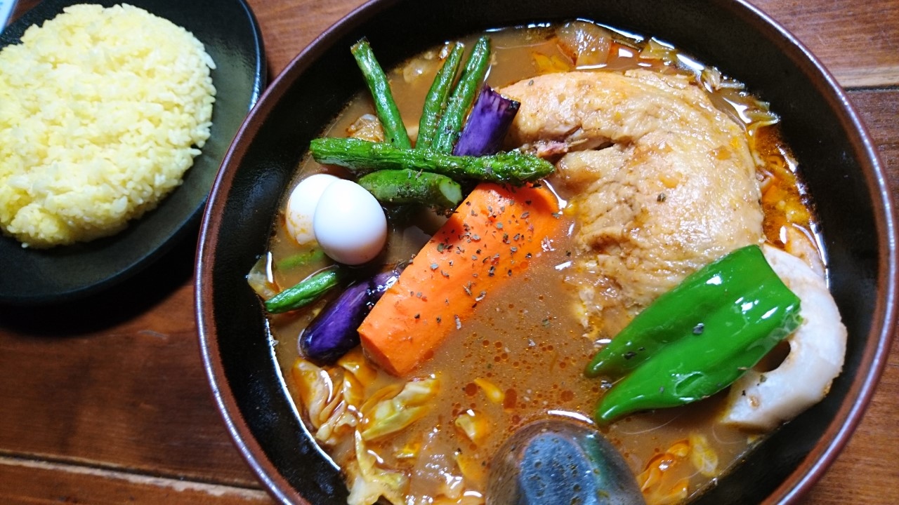 札幌ドームの近くにあるスープカレー屋さんです。ここの店のスープカレーは、スープがたっぷりあって大好きです。スープカレーとうたっているからには、スープの量は大切です。ライスのボリュームもあり、満足できます。味も優しさの中にスパイシーさもあってとてもお気に入りのスープカレー店です。野菜も多く、とてもおいしいスープカレーです。