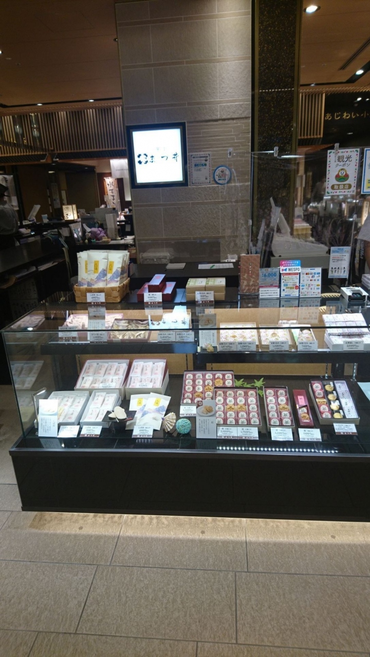 加賀百万石の伝統からか金沢は和菓子の宝庫で、駅名店街金沢百番街の菓子売り場は、地元の色々なお店が広く並んでいて選ぶのに迷う。今回は時間があったのでゆっくり見て、その店ごとの特徴が分かった。ここの名物は金箔羊羹。