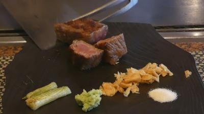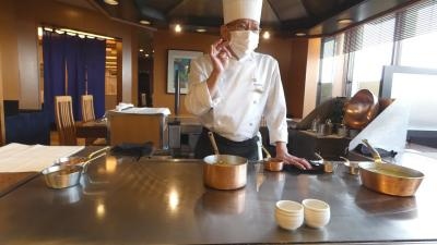 久しぶりの鉄板焼きコーナーはこんなに狭かったのかという印象ですが、久しぶりに担当してくれた成田シェフのサービスは素晴らしく、美味しく楽しいディナーが楽しめました。