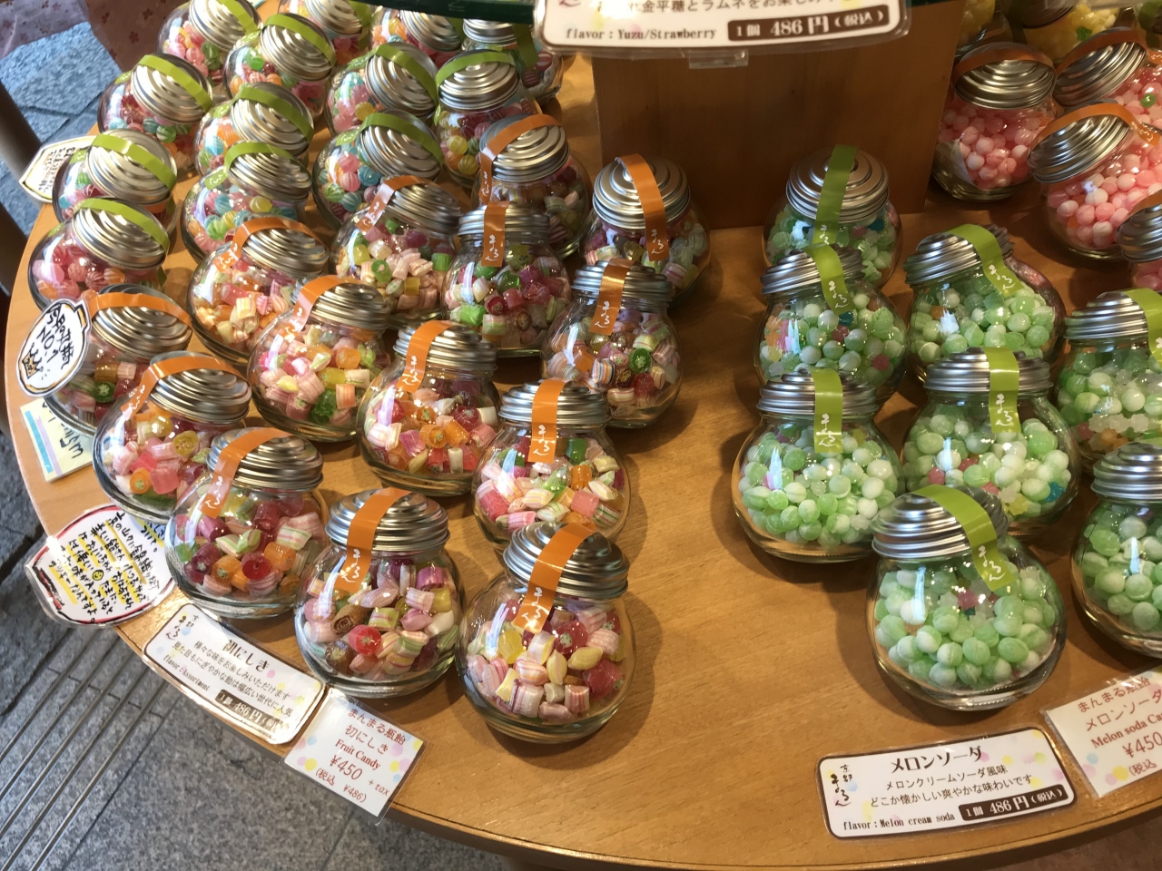 可愛い瓶に入った金平糖や京飴がとてもカラフルでお土産品におすすめな「まるん」