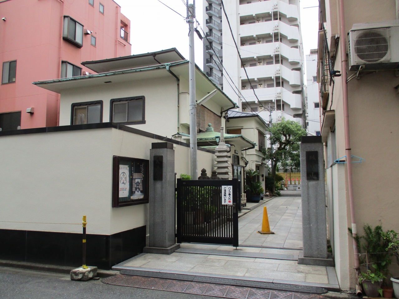 松が谷を散歩していた時に、お寺が目に入ったので寄ってみました。こじんまりとしたお寺で、寺門から入ると細長い参道があって、その先に六地蔵が祀られていました。参道の脇に古そうな石塔があって、天和の年号が読み取れました。1680年代なのでとても歴史がある石塔だと感心しました。