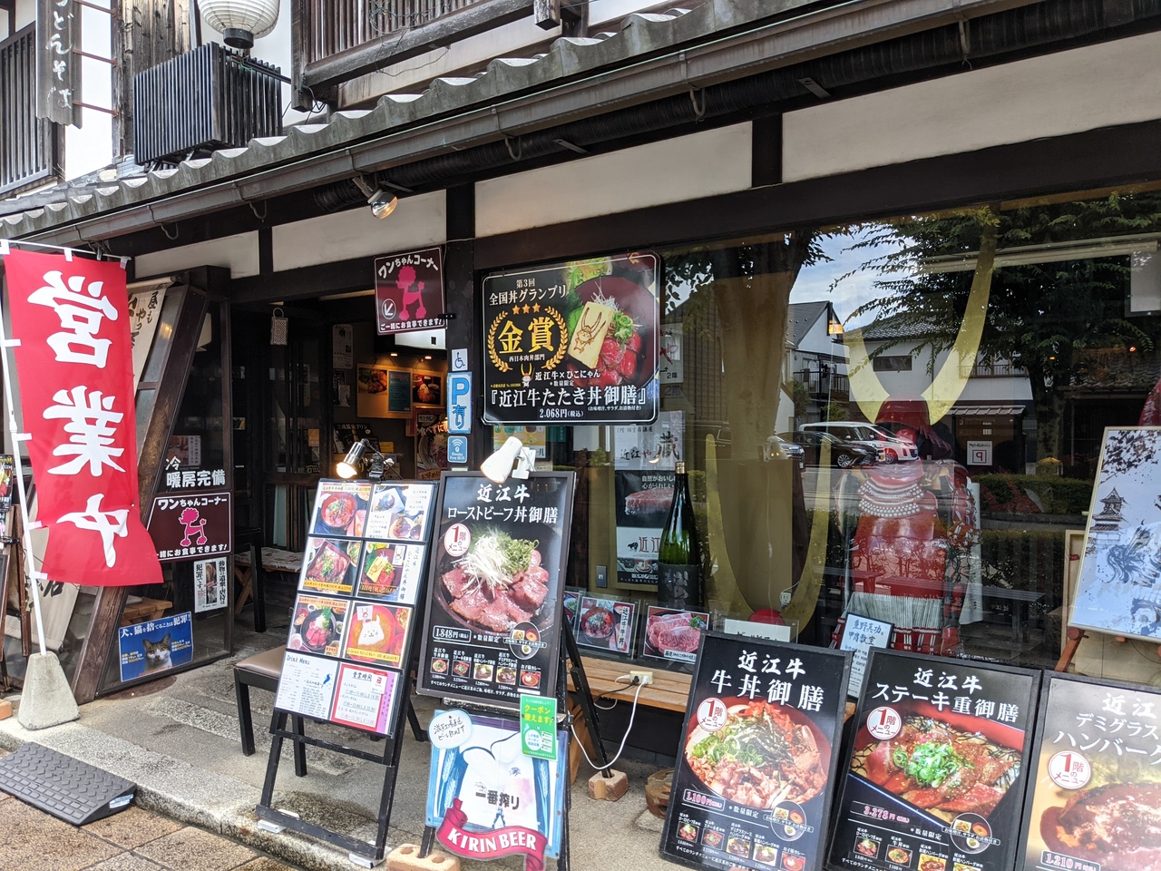 夢京橋キャッスルロードにあるお店です。近江牛を食べたかったのでランチで利用しました。店内は観光客や家族連れで賑わっていました。ローストビーフ丼を食べましたが、ローストビーフは柔らかくて美味しかったです。観光地の割りには値段もリーズナブルでした。