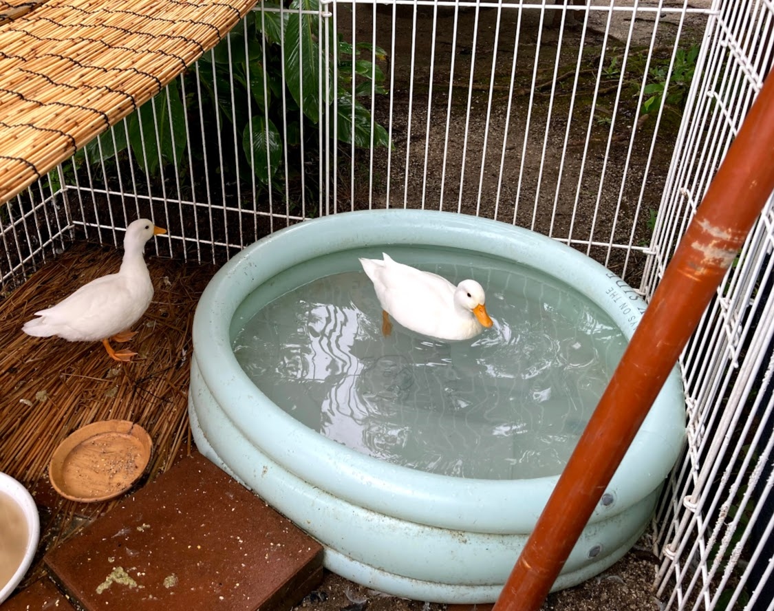 美味しいモーニング 緑いっぱい 可愛いアヒルもいます
