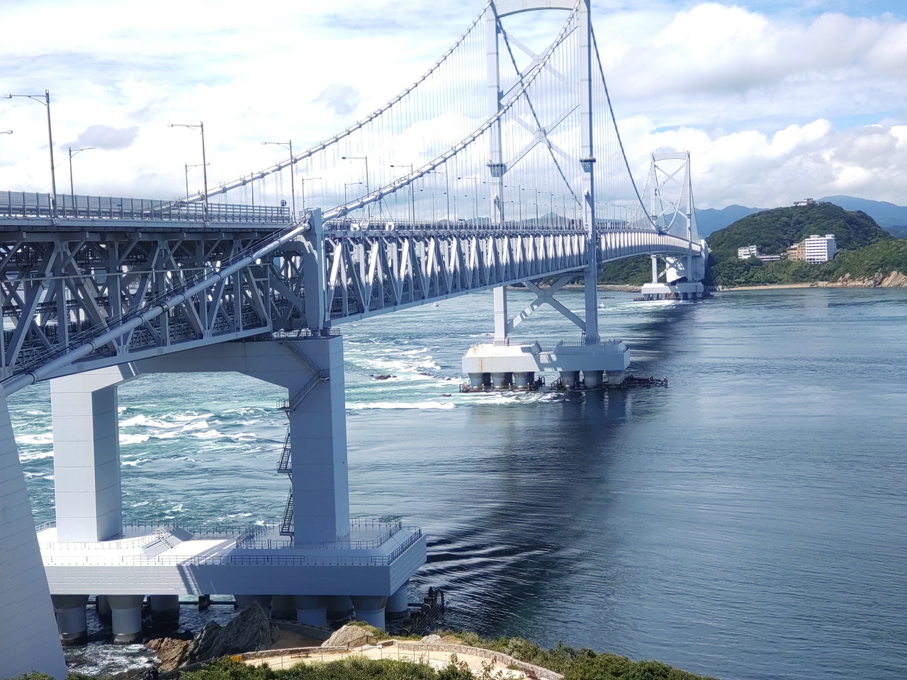 兵庫県の南端付近、そんなに広くはないけれどお土産が充実した道の駅です。玉ねぎと生姜のスープの試飲をやっていておいしかったので購入しました。大鳴門橋の全貌を近くで見ることができ、潮の流れの速さがよくわかりました。