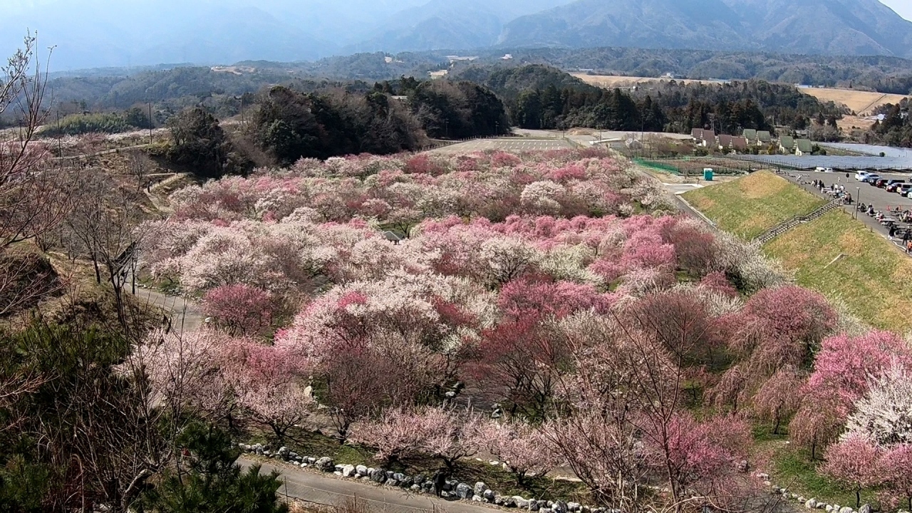 38ヘクタールの梅林公園には、100種類・4,000本以上の梅が咲き乱れており、圧巻でした。私たちは混雑を避けて早くいったのと駐車場が広かったので余裕でした。紅色をした梅だけではなく、色々な種類の梅を鑑賞することができました。特に枝垂れ梅が綺麗でした。