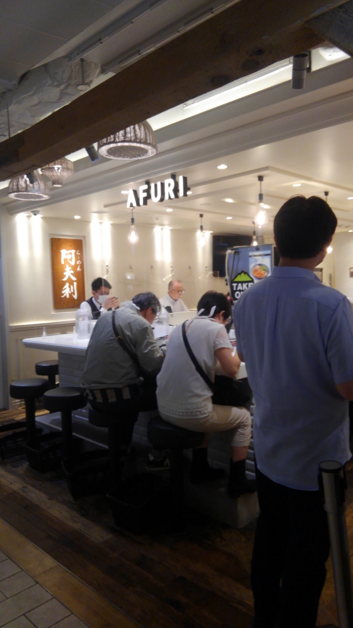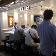 ルミネ新宿店ルミネ1の地下2階にラーメンのAFURIが入っています。このフロアには食品店、飲食店が色々あって、その一角にあるのですが、綺麗で明るいラーメン店です。定番のラーメンのほかに季節のラーメンも出るのが嬉しい。
