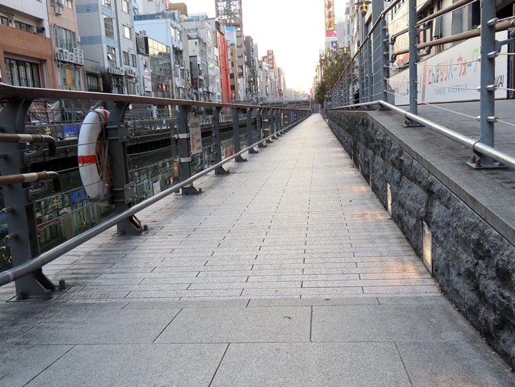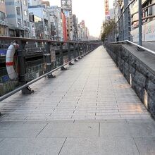 道頓堀川の両側を川に沿って伸びる遊歩道です。日本橋のところから川べりに降りて太左衛門橋まで少し歩いてみました。基本的に建物は川は面している側は裏面になるはずですが、道頓堀川とこの遊歩道は通行量がそれなりにあるので、建物も出入り口があったり、川のサイドを意識した作りになっているのが面白かったです。