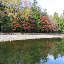駅の名前にもなっている川です。伊勢市内を流れている河川で伊勢神宮の西側にも流れています。伊勢神宮内には五十鈴川が「御手洗場」ともなっているので神聖な川ですね。ちょうど紅葉の季節だったのですが、流れが穏やかなので水面に紅葉が映ってとてもきれいでした。