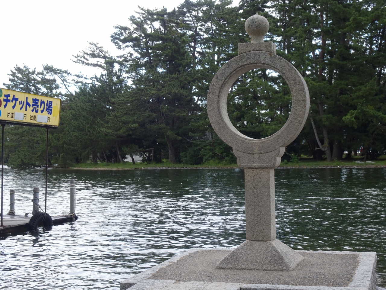 境内には本堂の他に多宝塔、そして観光船乗り場のすぐそばにある知恵の輪の灯籠があります。
