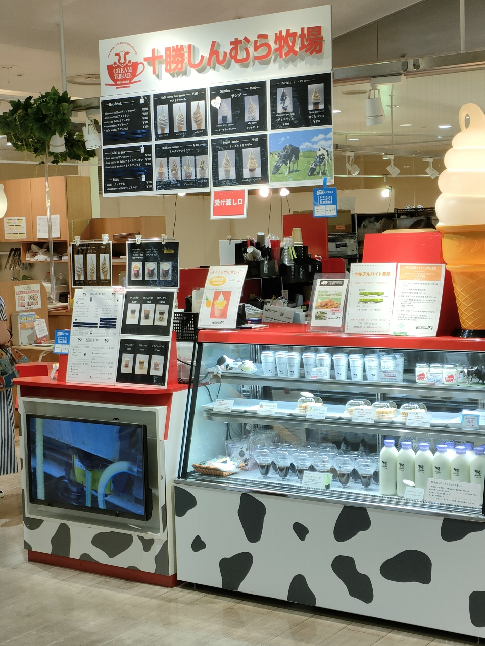 店頭にはモニターで牧場での牛の飼育の様子が流れ、いかにも酪農が盛んな地域といった感じです。