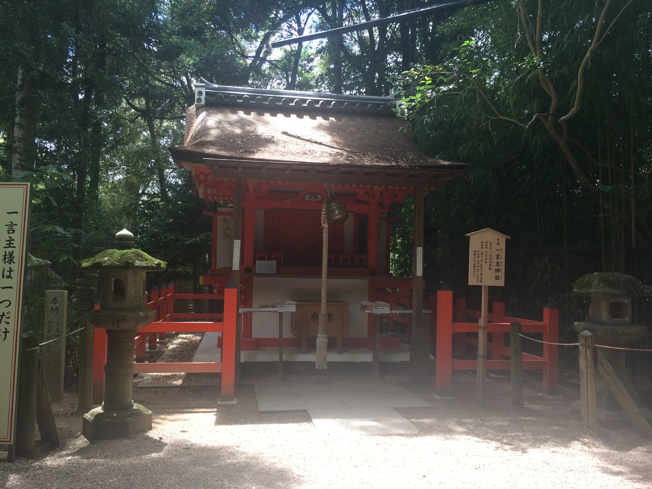 一言主神社は、春日大社の末社の1つです。7月に春日大社へ行った時に参拝しました。この神社は、平安時代初期に興福寺境内に創建され、明治以降に現在の春日大社の境内へお遷されたとのことです。この神社は。1つだけ願いを叶えてくださるという御神徳があります。成就した暁には、感謝の気持ちを込めて鳥居を奉納するしきたりがあります。社殿の前に小さな鳥居が奉納されていました。