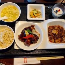 (黒酢の酢豚、麻婆豆腐)玄米を選びました❗