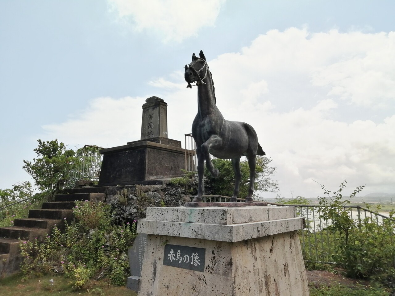 八重山諸島で祝宴の席などで歌い踊られる民謡「赤馬節」。この唄のモデルともなった赤馬の像です。この唄の内容は「心から嬉しさが込み上げてきて、地に足が着かず、宙に体が浮いて飛び上がりそう」というものでとても縁起がいい歌のようです。