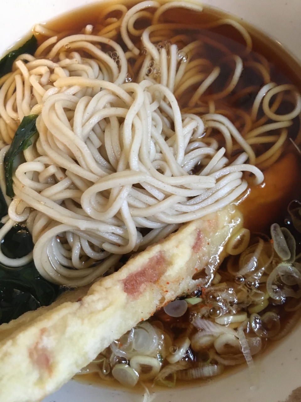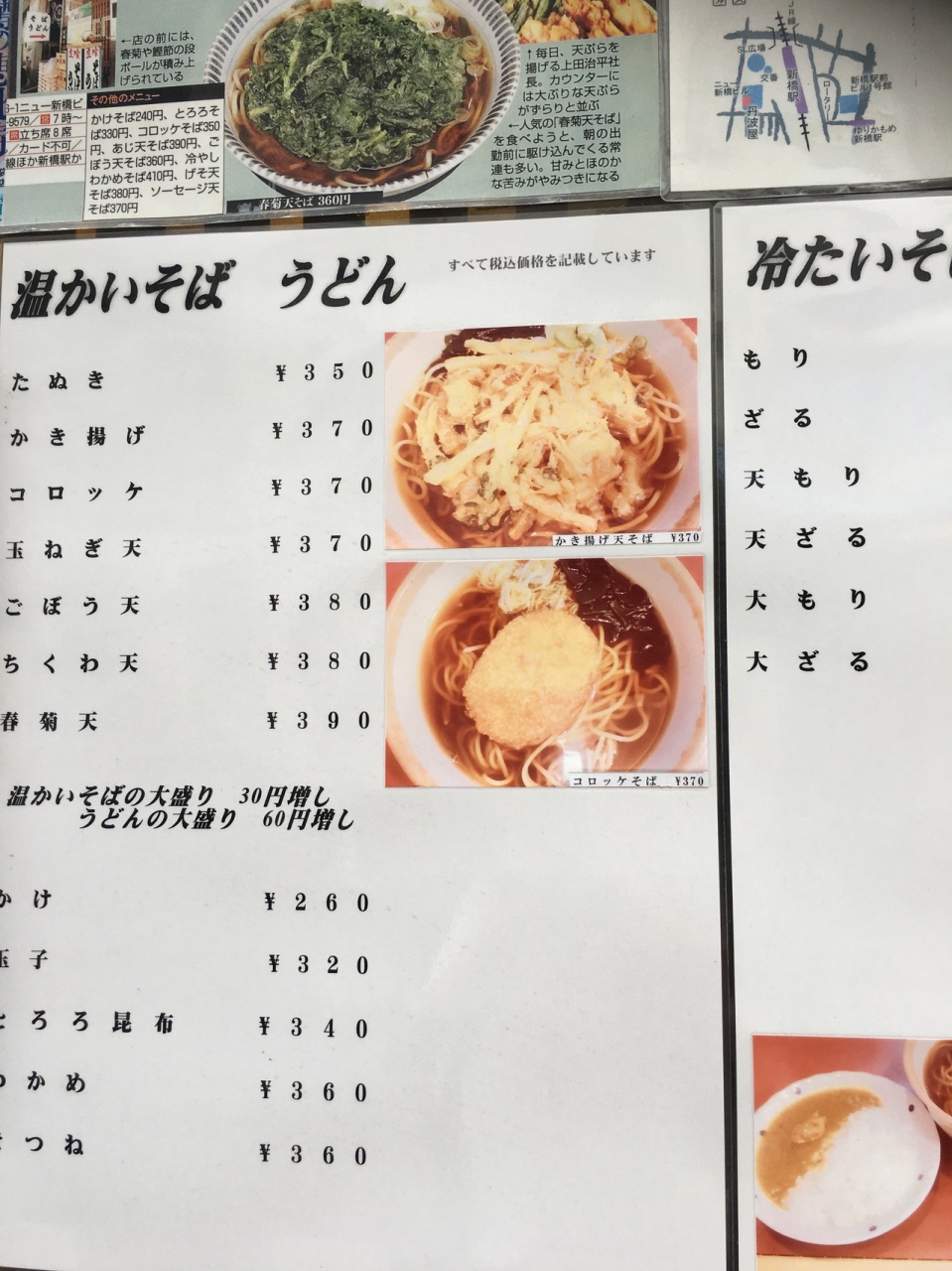 立ち食いそば屋で6~7人ぐらい入ることが出来る狭い店。ちくわ天そばを食べました。料金は前払いで現金のみの対応です。そばが細く素麺のような細さで柔らかい食感でした。ちくわ天が旨く長いサイズでした。新橋駅前のニュー新橋ビルにあり、出入口は外からの1箇所のみでビル内からは出入り出来ないです。