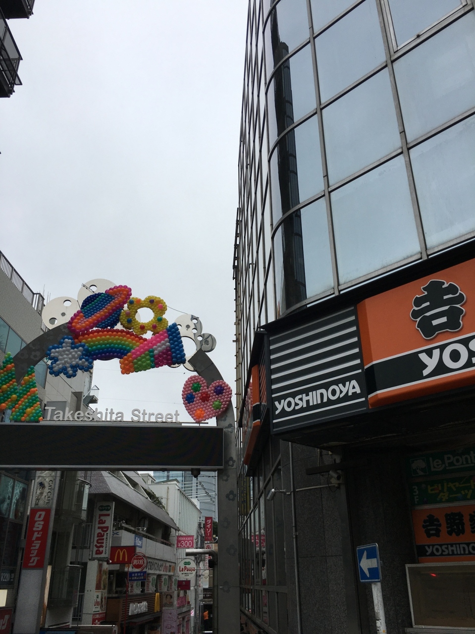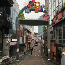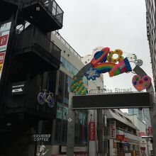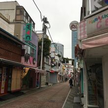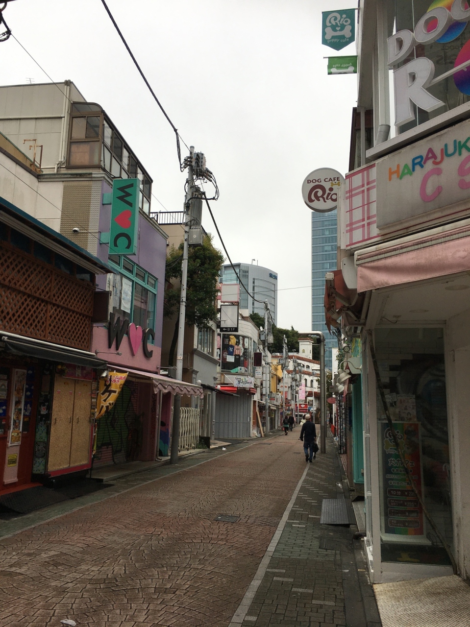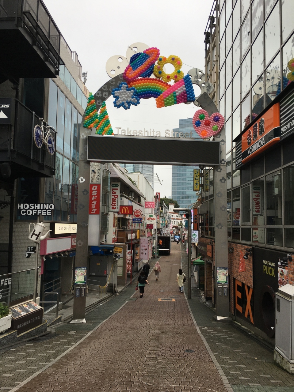 原宿駅前から道を挟んでありました。出入口の上には竹下通りと書いてありました。狭い道沿いの左右に小さな店がひしめきあっていました。朝方に行ったので店も開いてなく、人も少なめでした。通りからいくつか枝分かれした道があります。