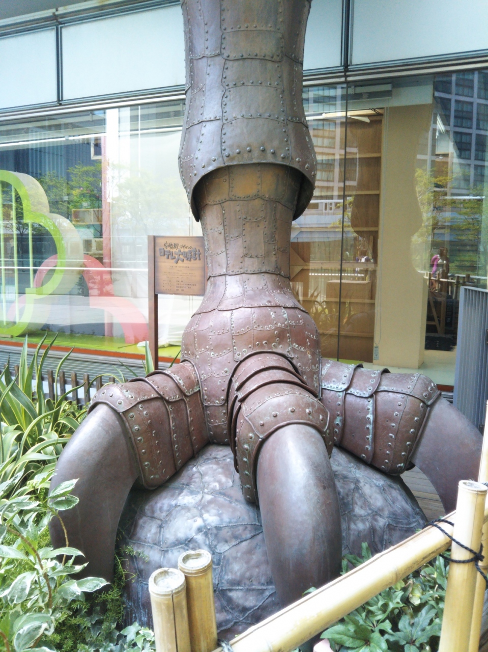 東京・汐留にある「日本テレビ社屋」のシンボル的な存在の『日テレ大時計』は、宮崎駿氏デザインのからくり時計です。ジブリ感満載のデザインとなっています。とても人気があり、いつも細部までゆっくりと見ることが出来ませんでしたが、今回は脚部を間近で見ることが出来ました。凝った作品となっています。