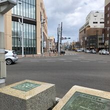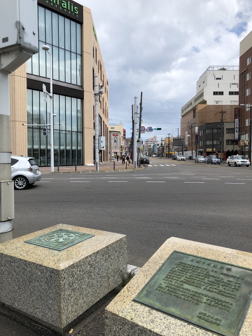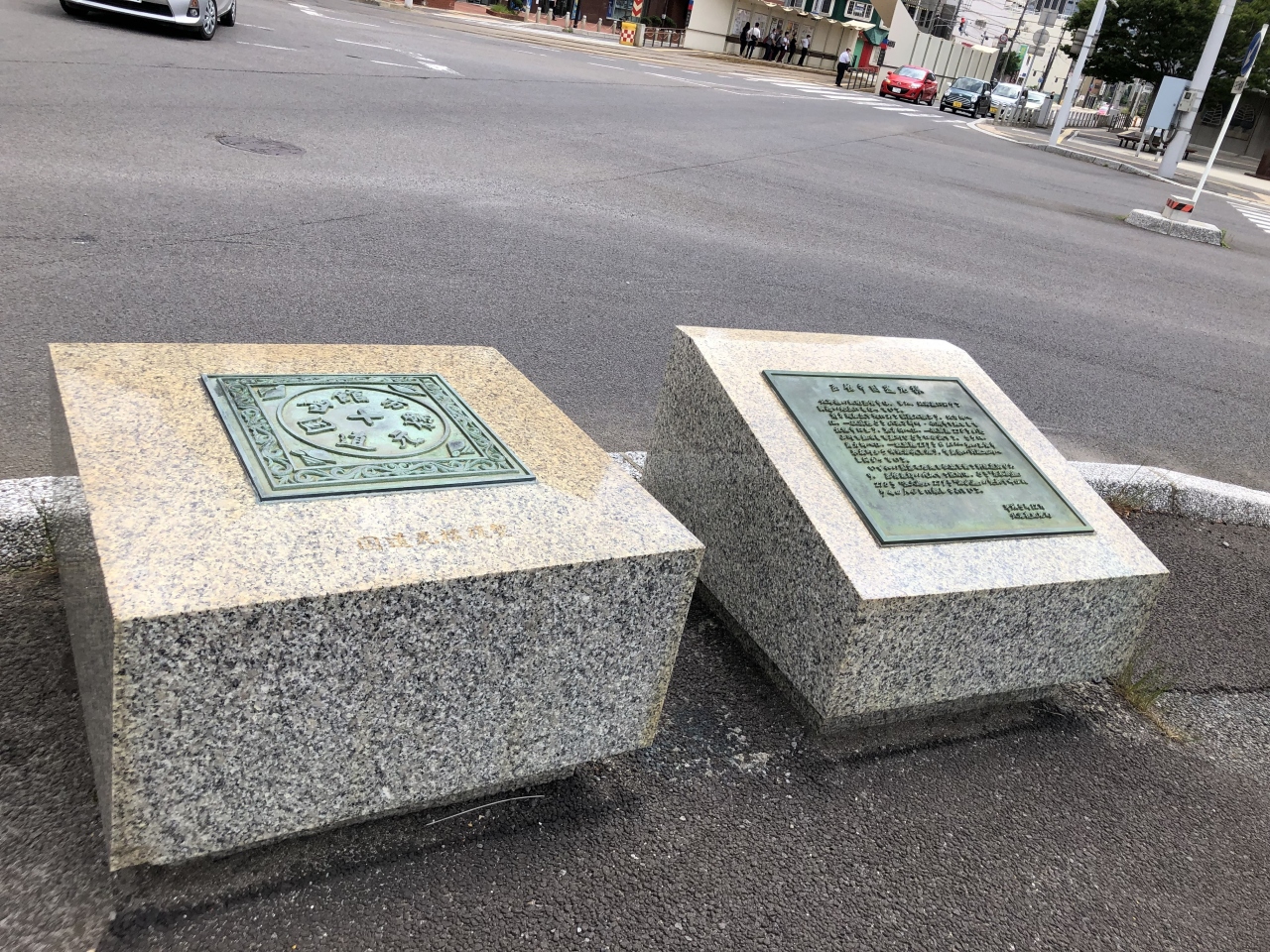 函館駅前のキラリス函館などがある交差点に設置されていました。これが北海道における国道の起点となっているそうです。知らないと、通り過ぎてしまいそうですが、信号待ちをしている人が気付いて、足を止めて見ていました。