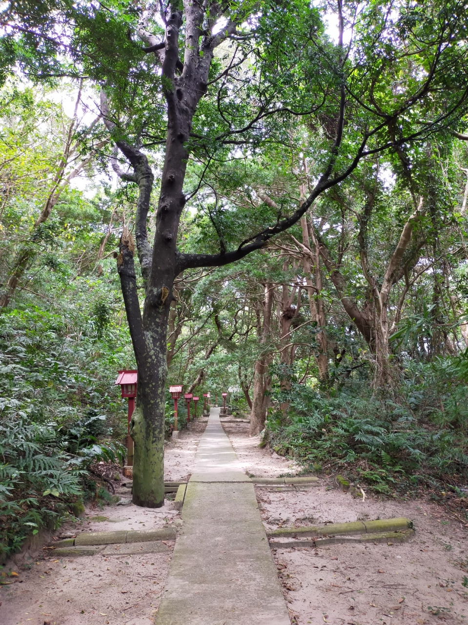 赤米博物館の向いにある神社です。博物館の駐車場もありますが、鳥居の左手の細い道を入って行くと、神社の駐車場もありました。森の茂るそれなりの参道もあり、神々の宿るところに使われる珊瑚石の石垣もありました。