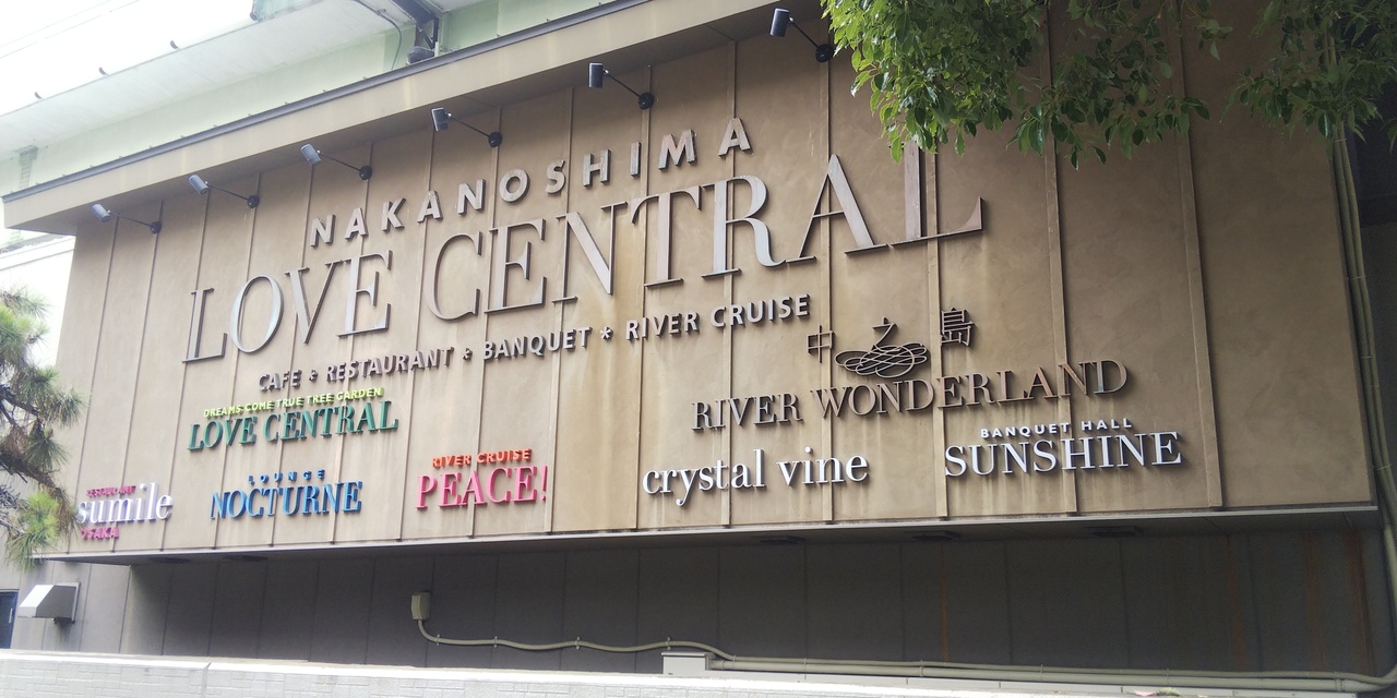 中之島のラブ セントラルは梅田に近い大阪裁判所のすぐ南側にあります。堂島川のすぐそばにあり、水晶橋から鉾流橋の間にあります。観光遊覧船の乗り場やオシャレなレストランがあります。夜には対岸の中央公会堂もライトアップされ、えぇ感じです。