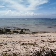 崎原公園以北の方がきれいかなと思います。公園南の海岸は感じのよい岩場になっていて磯遊びにはもってこいです。