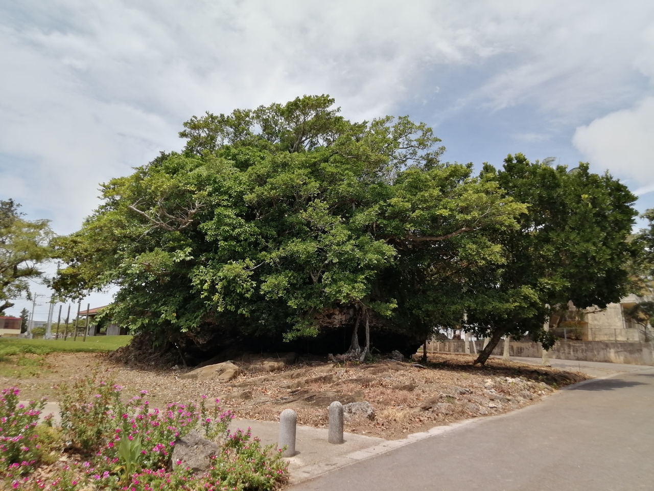 石垣島南部、大浜地区にある崎原公園の一角にその昔、津波で流されてきたという大きな岩があります(正確にはサンゴの塊)。その大きさ実に10m以上、重さは75トンと言われています。石垣島の東部には同じような岩が点在していますが、この津波大石は島内最大のもの。